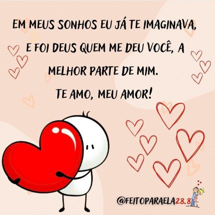 Em meus sonhos eu já te imaginava, e foi Deus quem me deu você, a melhor parte de mim. Te amo meu amor!