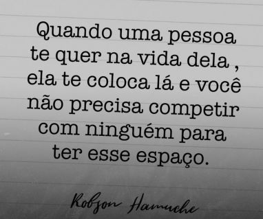 Quando uma pessoa te quer na vida dela, ela te te coloca lá e você não precisa competir com ninguém para ter esse espaço.