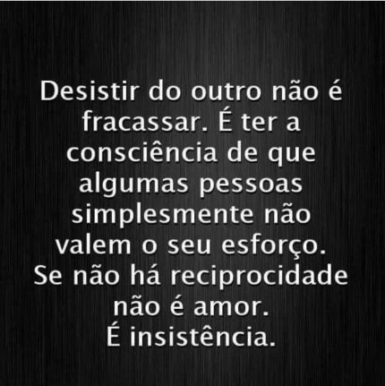Desistir do outro não é fracassar, é ter a consciência que algumas pessoas simplesmente não valem seu esforço.