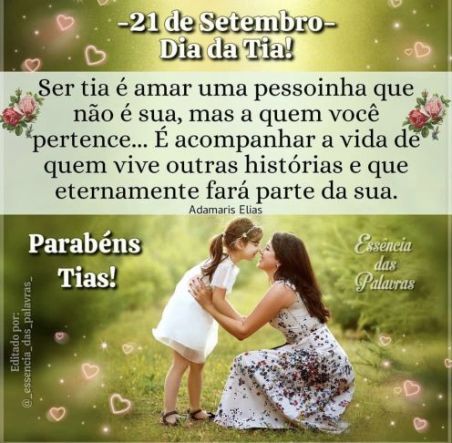 O Dia dos Tios, conhecido também como Dia da Tia e Dia do Tio, é celebrado no Brasil no dia 21 de setembro. As origens desta data são incertas, mas festejam uma figura importantíssima na vida de muitas pessoas. Afinal, os irmãos do pai ou da mãe tem um papel fundamental na formação dos sobrinhos,