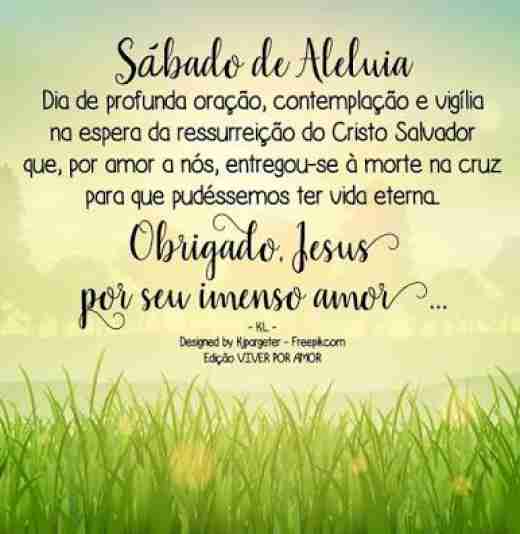 Sábado de Aleluia é o Sábado da Semana Santa, o primeiro dia depois da crucificação e morte de Jesus Cristo e o dia anterior ao Domingo de Páscoa. O Sábado de Aleluia ou Sábado Santo é uma data móvel, podendo cair entre os dias 21 de março e 24 de abril.