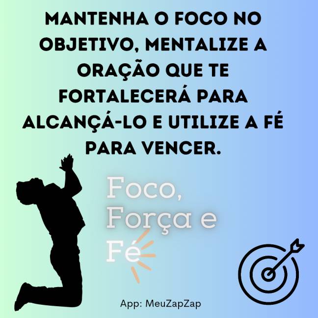 Mantenha o foco no objetivo, mentalize a oração que te fortalecerá para alcançá-lo e utilize a fé para vencer.
