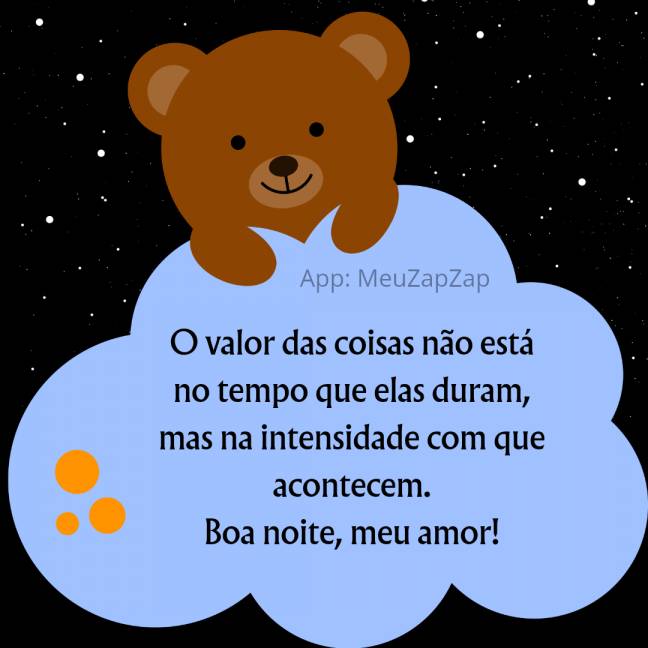 O valor das coisas não está no tempo que elas duram, mas na intensidade com que acontecem. Boa noite, meu amor! #boanoiteamor